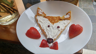 They turned out really cute, and tasty too! Sometimes, when I dropped the pancake (like on the rim of the pan) when I was flipping it over, the pancake would just break into pieces, so there were only scraps of the remaining pancakes. But I would dip the scraps in the whipped cream, and even though they weren't as pretty, they were just as delicious! Overall, I thought these pancakes were cute, creative, and tasty, so I want to make more of these pancakes! Any suggestions for my next pancake?